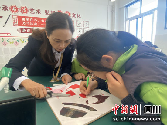 除了有與科技前沿接軌的人工智能課,學(xué)校還將中華傳統(tǒng)文化從小根植于每個學(xué)生心里,布貼畫就是其中之一。