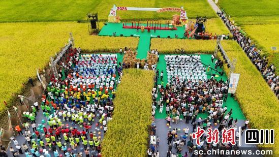 中新網(wǎng)四川新聞9月13日電 (鄒立洋)9月12日清晨,瀘州市古藺縣白沙場鎮(zhèn)的萬畝稻田里,沉甸甸的稻穗壓彎了禾稈,微風(fēng)拂過,金色稻浪翻滾,裹挾著清甜的稻香撲面而來。以稻田為舞臺(tái),群眾為演員,2025年古藺縣農(nóng)民豐收節(jié)在此舉行。