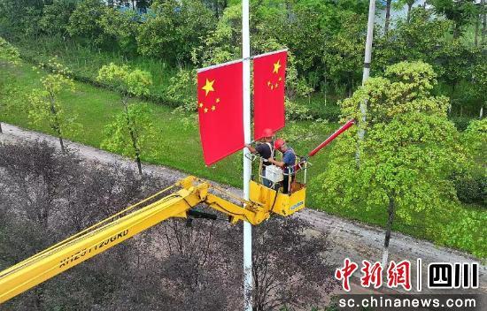 中新網(wǎng)四川新聞9月23日電(吳平華 陳欣 孫小紅)近日,資陽(yáng)市樂(lè)至縣城區(qū)多條主干道路燈桿上,悄然掛起了一面面鮮艷的五星紅旗。醒目的“中國(guó)紅”成為城市中一道亮麗的風(fēng)景線,不僅為城市增添了濃厚的節(jié)日氛圍,更點(diǎn)燃了市民心中熾熱的愛(ài)國(guó)情懷。