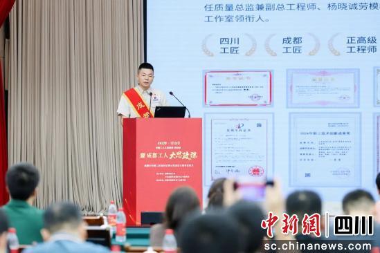 來自中國水電五局的四川工匠、成都工匠楊曉誠,用“攻堅(jiān)克難,必有收獲”總結(jié)自己27年來的基層一線工作,深情講述從一名基層開挖隊(duì)技術(shù)員開始,在崗位上攻堅(jiān)克難,完成了紫坪鋪水利樞紐工程建設(shè)、錦屏二級(jí)水電站“西電東送”等多個(gè)國家級(jí)工程。他成立的創(chuàng)新工作室為行業(yè)先后培養(yǎng)了20多名高技能人才,持續(xù)為中國電建技術(shù)和成都城市高質(zhì)量發(fā)展作出貢獻(xiàn)。