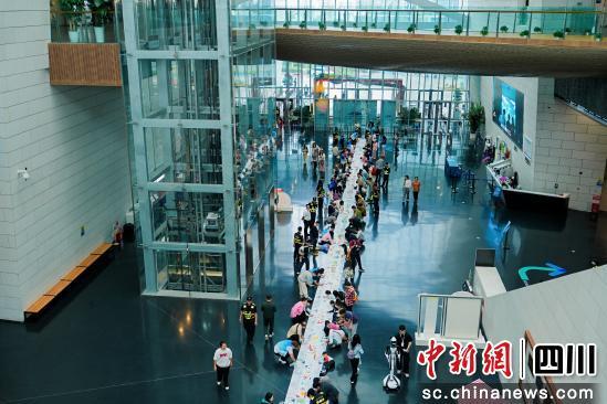 中新網(wǎng)四川新聞10月1日電 (唐倩)10月1日,成都自然博物館館內(nèi)迎來一場別開生面的藝術(shù)盛事——“一卷天府萬物生·共執(zhí)彩筆繪蓉城”大型公益繪畫活動。76組家庭齊聚一堂,以畫筆為媒,以色彩為言,共同執(zhí)筆繪制一幅長達76米的“成都城市生物圖鑒”藝術(shù)長卷。