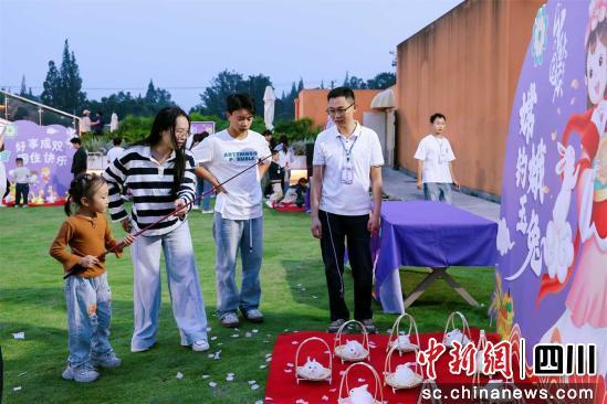 走進“村糖會”,市民游客先領(lǐng)到了一張“通關(guān)卡”,這是為游戲互動準備的。現(xiàn)場設(shè)置了多項趣味游戲,包括“射手投壺”“識破圈套”“眼疾手快”“好運乒乓”“嫦娥釣玉兔”等,吸引各個年齡段的居民踴躍參與。投壺區(qū),幾位老人手持箭矢,沉穩(wěn)投擲,盡顯“老當益壯”的從容氣度。“嫦娥釣玉兔”一分鐘內(nèi)吊起兩只“玉兔”就算成功,現(xiàn)場引得圍觀群眾陣陣喝彩與鼓勵。
