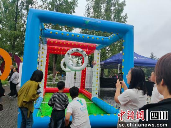 永昌機(jī)場上空,順翼通用航空的飛機(jī)劃出優(yōu)美弧線,地面上游客在專業(yè)指導(dǎo)下體驗?zāi)M飛行;無人機(jī)足球賽場內(nèi),年輕人操控設(shè)備“空中競技”,來自甘肅的游客張洪直呼“開戰(zhàn)斗機(jī)模擬器太刺激”。