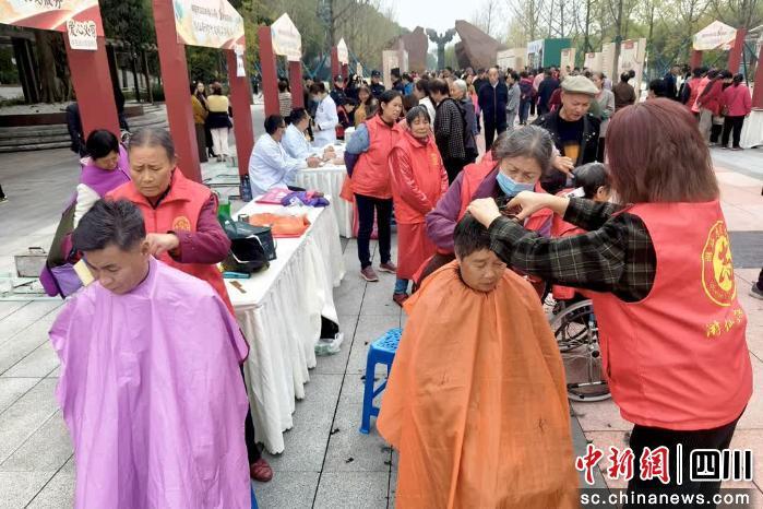 舞臺(tái)上精彩不斷,臺(tái)下的互動(dòng)區(qū)域同樣人氣爆棚。在愛心義診、愛心義剪區(qū),志愿者給大家?guī)?lái)了貼心的服務(wù),讓老年群體切實(shí)感受到社會(huì)的關(guān)愛與溫暖。在非遺展示區(qū),文昌年畫、富樂(lè)糖畫、綿州盤扣制作技藝等項(xiàng)目齊聚,傳承人們現(xiàn)場(chǎng)展示精湛技藝,帶大家近距離感受非遺的魅力。在游園互動(dòng)區(qū)更是充滿了歡聲笑語(yǔ),茱萸投壺賽、歡樂(lè)夾豆子、重陽(yáng)套福禮等趣味游戲吸引了眾多市民參與。
