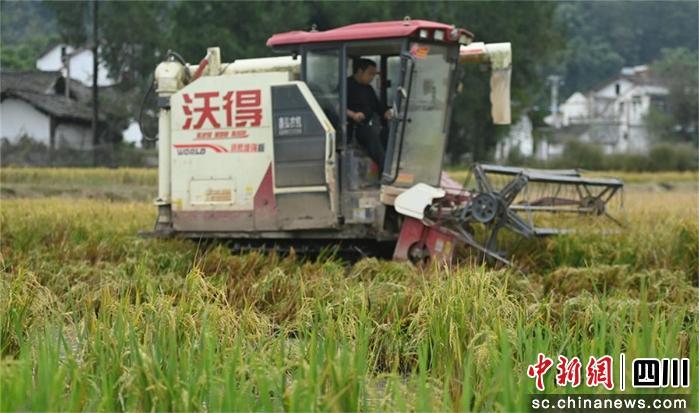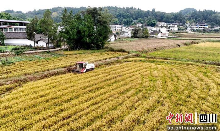 中新網四川新聞11月12日電(王爵 周亮)11日,種糧大戶康志鋼正組織機械力量,緊抓晴好天氣,對園區(qū)內成熟的再生稻進行開鐮收割,確保顆顆飽滿的稻谷盡數歸倉。眼下,蓬安縣睦壩糧油現代農業(yè)園區(qū)內,一片豐收景象映入眼簾。金黃的稻浪隨風起伏,收割機的轟鳴聲奏響了喜悅的樂章。