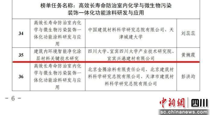 中新網(wǎng)四川新聞12月14日電(吳平華 劉書堂)近日,中國建筑材料聯(lián)合會與住房和城鄉(xiāng)建設部科技與產(chǎn)業(yè)化發(fā)展中心聯(lián)合公布首批“好材料適配好房子”科技攻關“揭榜掛帥”項目榜單,由三江集團港建公司興港建材和四川大學、宜賓四川大學產(chǎn)業(yè)技術研究院協(xié)同攻關的“建筑內(nèi)環(huán)境智能凈化涂層材料關鍵技術研究”項目,經(jīng)嚴格評審脫穎而出,成功入選國家級科技攻關榜單。這標志著該聯(lián)合團隊在綠色建筑功能材料領域的技術創(chuàng)新實力獲得國家級權威認可,也為國內(nèi)室內(nèi)環(huán)境健康提升與建材產(chǎn)業(yè)升級注入強勁動力。