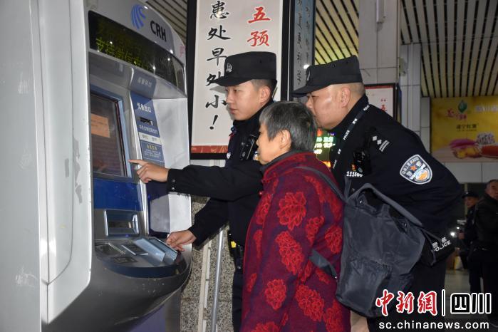 服務(wù)旅客是鐵路公安工作的溫情注腳。12月22日上午,一位老人在候車(chē)大廳內(nèi)徘徊張望,民警張浩軍、徐偉高鐸主動(dòng)上前詢(xún)問(wèn),得知老人不熟悉購(gòu)票流程和檢票位置后,他們耐心協(xié)助其在自助服務(wù)機(jī)查詢(xún)行程、打印信息,并一步步引導(dǎo)操作。