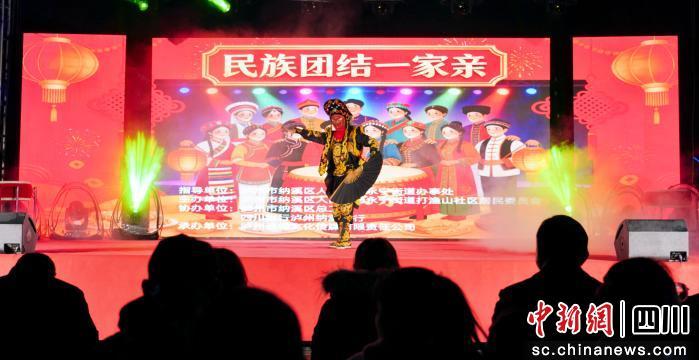 中新網(wǎng)四川新聞12月31日電(鄒立洋) 日前,“民族團結(jié)一家親 辭舊迎新慶元旦”文藝匯演活動在瀘州市納溪區(qū)永寧街道打漁山社區(qū)舉辦,來自各民族的群眾齊聚一堂,用歌舞傳遞團結(jié)與祝福。