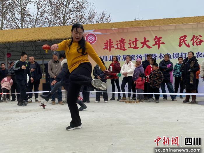 中新網(wǎng)四川新聞1月2日電 (王開晉 郭鳳萍 鄢懷林)元旦佳節(jié),廣元市青川縣木魚鎮(zhèn)板橋村的壩壩里暖意融融、歡聲陣陣,一場集非遺傳承、農(nóng)耕趣味與經(jīng)濟(jì)活力于一體的“打臭”民俗活動(dòng)熱鬧開場,不僅讓村民和游客沉浸式感受了傳統(tǒng)年俗的魅力,更以“壩壩”為載體激活鄉(xiāng)村消費(fèi),讓非物質(zhì)文化與“壩壩經(jīng)濟(jì)”雙向賦能,為鄉(xiāng)村振興注入新動(dòng)能。