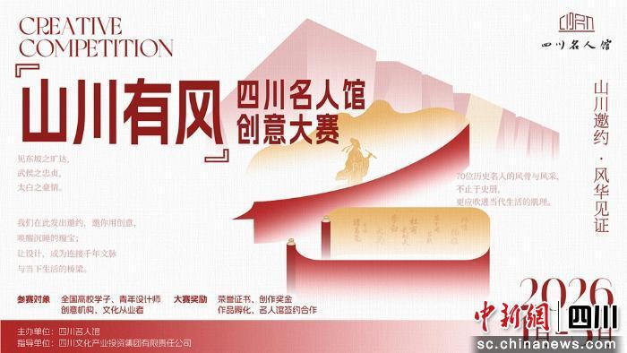 中新網(wǎng)四川新聞1月23日電 (記者 劉忠俊)1月23日,由四川名人館主辦的“山川有風(fēng)——四川名人館創(chuàng)意大賽”在成都啟幕。本次大賽以“歷史名人走進(jìn)生活”為核心理念,面向全國(guó)征集兼具文化內(nèi)涵與當(dāng)代創(chuàng)意的作品,推動(dòng)四川名人文化資源創(chuàng)造性轉(zhuǎn)化、創(chuàng)新性發(fā)展,讓千年巴蜀文脈在當(dāng)代生活中煥發(fā)新生。