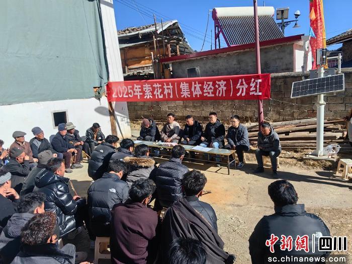 中新網(wǎng)四川新聞1月30日電 (薛云發(fā))28日,阿壩州松潘縣毛兒蓋鎮(zhèn)索花村村集體用房的院壩中,87戶村民代表齊聚一堂分享集體經(jīng)濟蓬勃發(fā)展帶來的紅利,根據(jù)索花村集體經(jīng)濟收益分配方案,2025年度村集體經(jīng)濟收入達(dá)25.75萬元,其中20萬元以現(xiàn)金形式均發(fā)給村民,剩余資金用于壯大集體經(jīng)濟和購置物資,每戶分紅2300元現(xiàn)金和越冬煤炭300公斤。