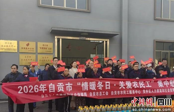 中新網(wǎng)四川新聞2月10日電 (劉曉丹 鐘林峰)近日,自貢市總工會、自貢市人力資源和社會保障局、自貢市農(nóng)民工服務(wù)中心聯(lián)合貢井區(qū)總工會、貢井區(qū)人社局組成慰問組,赴貢井區(qū)某電力附件有限公司開展了2026年“情暖冬日·關(guān)愛農(nóng)民工”集中慰問活動,為一線農(nóng)民工送上黨和政府的關(guān)懷與節(jié)日祝福。