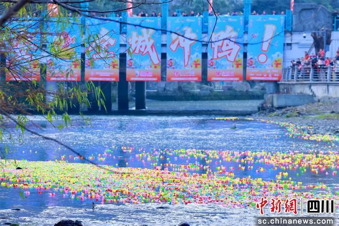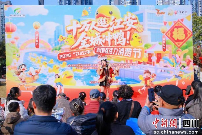 中新網(wǎng)四川新聞2月11日電 11日,作為“2026溫江村糖會(huì)•金溫江年宵花市”的子活動(dòng),2026“Zui公平”濱河新春活力消費(fèi)節(jié)迎來了“全城沖鴨日”巔峰時(shí)刻。十萬只小鴨順江安河而下,經(jīng)過1.5公里漂流后,“超級(jí)錦鯉”揭曉,獲得1萬元現(xiàn)金獎(jiǎng)勵(lì)。第2至1000名以及直播間里“萬里挑一”的幸運(yùn)觀眾獲得盲盒福袋,為本次活動(dòng)畫下一個(gè)“逗號(hào)”。接下來,福袋中的折扣券、代金券以及“霸王餐券”等將進(jìn)一步延伸消費(fèi)鏈。