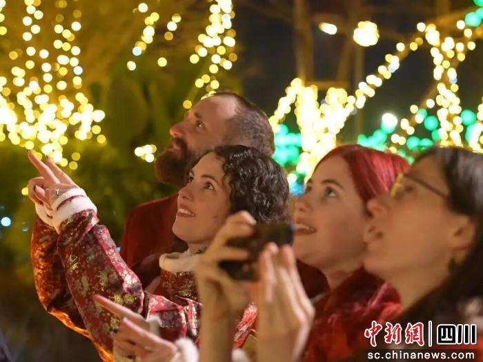 Grace則一邊沉浸式感受著光影魅力,一邊和家人分享:“來成都生活多年,每年都能感受到年文化的魅力,彩燈不僅是一種展示,更是中國人對傳統(tǒng)的傳承!庇斡[結(jié)束,余興未盡的一家人不忘通過鏡頭向世界發(fā)出誠摯邀請:“快來成都感受燈會的獨特魅力!”