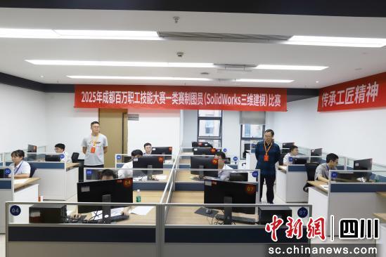 中新網(wǎng)四川新聞9月17日電 (高于茹)2025年成都百萬職工技能大賽制圖員(SolidWorks三維建模)比賽17日在成都中鐵產(chǎn)業(yè)園火熱開賽。本次比賽由成都市總工會、成都市人力資源和社會保障局聯(lián)合主辦,成都市裝備制造工會承辦,中鐵工程服務(wù)有限公司等單位協(xié)辦,來自29個單位近百名選手同臺競技,展開激烈角逐。