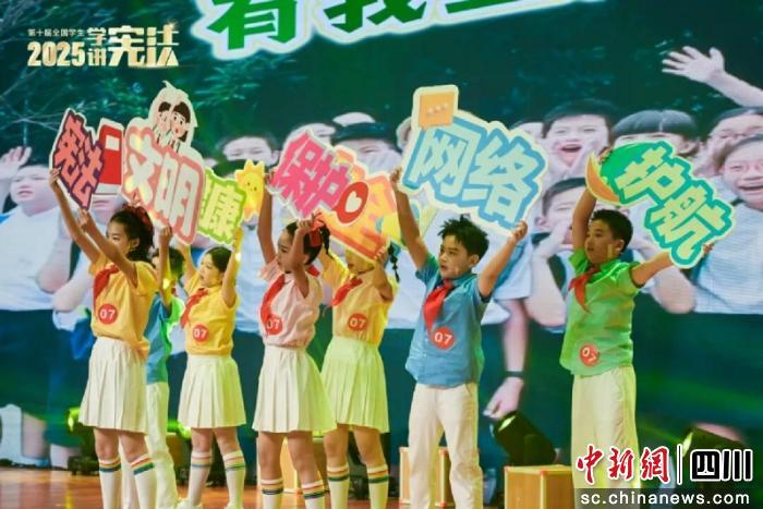 中新網(wǎng)四川新聞11月25日電(吳平華 楊雪怡)近日,在第十屆全國學(xué)生“學(xué)憲法講憲法”賽之大中小學(xué)法治情景劇賽全國總決賽中,成都市草堂小學(xué)西區(qū)分校原創(chuàng)作品《“網(wǎng)事知多少”——法治護(hù)航成長(zhǎng)路》代表四川省參加中小學(xué)組總決賽,憑借真實(shí)的劇情、生動(dòng)的演繹和深刻的法治內(nèi)涵,榮獲全國賽亞軍,并作為國賽中小學(xué)組唯一的優(yōu)秀作品代表在頒獎(jiǎng)典禮上進(jìn)行現(xiàn)場(chǎng)展演,成為本場(chǎng)賽事的焦點(diǎn)之一。
