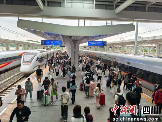 從客流流向看,熱門目的地需求旺盛。其中,前往重慶方向的旅客超20.3萬(wàn)人次,成為最主要出行方向;前往宜賓方向的旅客突破4.8萬(wàn)人次,較去年同期的1800人次實(shí)現(xiàn)“量級(jí)跨越”;自貢、內(nèi)江方向分別發(fā)送旅客3.1萬(wàn)人次和0.7萬(wàn)人次。暑運(yùn)后期,學(xué)生旅客成為返程高峰主力軍,同時(shí)錯(cuò)峰旅游旅客占比顯著,高鐵已成為區(qū)域居民出行的首選方式。
