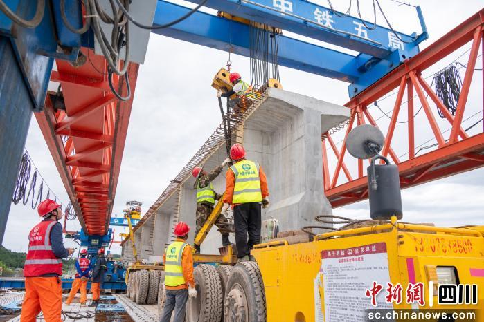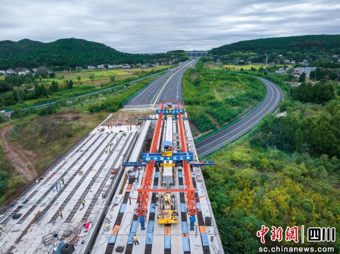 中新網四川新聞10月13日電 (劉曉東 邱雨嫕)10月12日,在綿陽市境內的G5京昆高速廣元至綿陽段擴容工程架梁施工現場,隨著中鐵五局作業(yè)人員操控著架橋機將最后一片T梁起吊、平移,最后精準落在牛頭河大橋橋臺上,標志著G5京昆高速廣元至綿陽段擴容工程綿陽段全段橋梁貫通,為實現全線建成通車奠定堅實基礎。