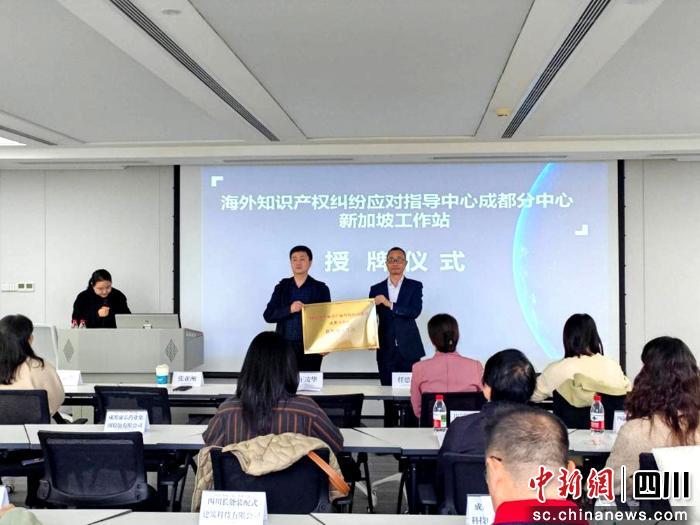 中新網(wǎng)四川新聞11月7日電。ㄓ浾摺⒅铱。11月7日,海外知識(shí)產(chǎn)權(quán)糾紛應(yīng)對(duì)指導(dǎo)中心成都分中心新加坡工作站完成正式授牌并啟動(dòng)運(yùn)作,成為成都市首個(gè)聚焦知識(shí)產(chǎn)權(quán)維權(quán)的海外服務(wù)站點(diǎn)。