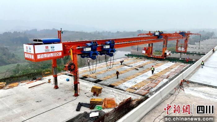 公路建設(shè)同樣捷報頻傳。在天眉樂高速公路TJ3標(biāo)段施工現(xiàn)場,工人們分布在各個作業(yè)點位,有條不紊地推進梁板安裝、橋面鋪裝、防撞護欄澆筑及濕接縫施工等關(guān)鍵工序,項目建設(shè)蹄疾步穩(wěn)。“目前,項目正全力推進橋梁上部結(jié)構(gòu)及路基土石方施工,各項進度指標(biāo)穩(wěn)步達標(biāo)!碧烀紭犯咚賂J3標(biāo)段生產(chǎn)經(jīng)理廖遠強介紹,截至目前,橋梁樁基完成95%、墩柱完成93%、蓋梁完成85%,主線路基土石方完成80%;項目部正集中力量推進梁板架設(shè)工作,計劃2026年1月初實現(xiàn)半幅貫通,力爭春節(jié)前完成主線全幅貫通。