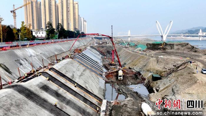 該項目施工項目經(jīng)理姜亞秋介紹,自項目打圍施工以來,已順利完成“四拆一建”前期準(zhǔn)備工作。當(dāng)前,施工團隊正集中力量攻堅,搶抓涉水部分防滲面板、衡重式擋墻及忠孝橋關(guān)鍵節(jié)點施工,同時全面推進給排水管道鋪設(shè)和塑性混凝土防滲墻澆筑作業(yè),確保項目按序時進度推進。
