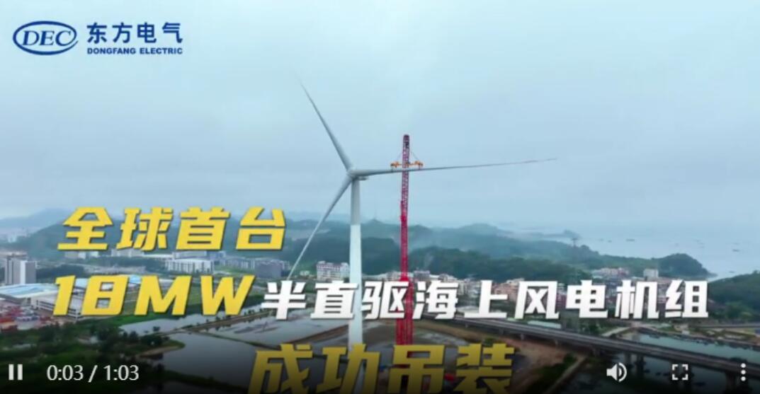 由東方電氣集團自主研制的首臺18兆瓦半直驅(qū)大功率海上風(fēng)電機組,在廣東省汕頭市風(fēng)電臨海試驗基地成功完成吊裝,這是當(dāng)前全球已安裝的最大功率等級海上風(fēng)電裝備,全球已安裝的海上風(fēng)電機組功率等級邁入新的里程碑。