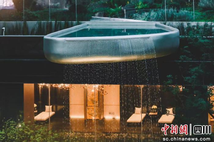 寬約百米的巍巍昆侖門庭界面,瑤池的跌水層層奇幻景深,蓬萊的島嶼漂浮蓬勃海域,還有方寸、星臺、堯光等仙圃七庭締造的微觀自然中的靈愈棲所,不僅是景觀,更成為東方想象力的當(dāng)代轉(zhuǎn)譯,匠心營造出“可游可憩的仙境園林”。而私域湯泉、悅己女王館/私董會,恒溫泳池、音波療愈室與私人影院形成完整奢養(yǎng)動線,生命的美學(xué)元素在此被精心排列,實(shí)現(xiàn)“養(yǎng)身-養(yǎng)心-養(yǎng)神”的體驗(yàn)升維,讓“三養(yǎng)一生”奢養(yǎng)生活直抵心靈深處。