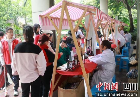 中新網(wǎng)四川新聞4月15日電 近日,成都市溫江區(qū)涌泉街道麗晶港社區(qū)開展了“溫江造”產(chǎn)品集中推介暨中醫(yī)藥文化體驗(yàn)健康行動(dòng)。活動(dòng)采用“產(chǎn)品展銷+文化體驗(yàn)”復(fù)合模式,設(shè)置了“溫江造”產(chǎn)品專區(qū)集中展銷,并安排醫(yī)生把脈問診、針灸推拿體驗(yàn)、中藥香囊DIY等互動(dòng)環(huán)節(jié),寓教于樂普及中醫(yī)藥知識(shí),該活動(dòng)單日吸引超2000名群眾參與。