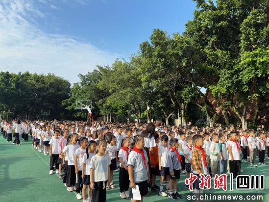 中新網(wǎng)四川新聞9月1日電 (堯欣雨)1日上午,成都市花園(國際)小學一校兩區(qū)全體師生整齊列隊,以“強身健體·保家衛(wèi)國”為主題,舉行了一場莊重而充滿活力的開學典禮。在雄壯的國歌聲中,五星紅旗冉冉升起,全體師生肅立注目,高唱國歌,用最莊嚴的儀式開啟新征程。