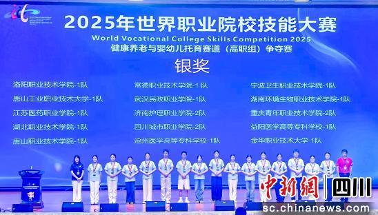 中新網(wǎng)四川新聞9月4日電。▌⒅铱 劉燕)近日,2025年世界職業(yè)院校技能大賽總決賽收官。來自四川城市職業(yè)學院(以下簡稱“四川城職院”)的參賽團隊,憑借卓越的專業(yè)技能和出色的團隊協(xié)作,在眾多強勁對手中脫穎而出,分別斬獲健康養(yǎng)老與嬰幼兒托育賽道高職組金獎與銀獎。其中,金獎團隊以總分第一的成績晉級天津排位賽,實現(xiàn)了學校在該賽道的歷史性突破。