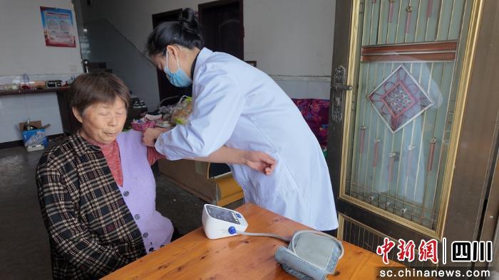在洪雅余坪鎮(zhèn)謝在容家,家庭醫(yī)生一邊輕聲引導(dǎo)其康復(fù)訓(xùn)練,一邊監(jiān)測動態(tài)血壓。因右手殘疾需長期康復(fù)的謝在容坦言,醫(yī)生技術(shù)好還陪她聊天,如今動作更靈活,笑容也多了。