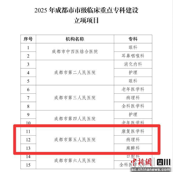 臨床重點專科是推動醫(yī)院高質量發(fā)展的核心力量。三個科室的入選,充分體現(xiàn)了其在扎實的臨床功底、規(guī)范的診療體系和持續(xù)的創(chuàng)新能力等方面的綜合優(yōu)勢,也為成都市第五人民醫(yī)院專科發(fā)展注入了新動力。