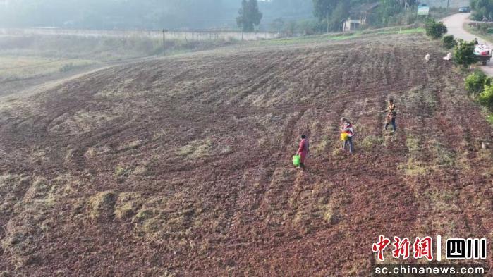 中新網四川新聞11月25日電(吳平華 張鳳莉 姚陽)24日,在資陽市樂至縣天池街道團店村的富硒小麥試驗基地,幾名村民正彎腰將拌好的麥種均勻地撒向土地,身后的旋耕機隆隆作響,翻起的泥土將麥種輕輕覆蓋。一粒小麥的“三級跳”,正從這里開始。