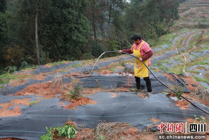 中新網(wǎng)四川新聞12月26日電(吳平華 劉怡)近日,宜賓翠屏區(qū)金坪鎮(zhèn)菜子村的藍莓種植基地一片繁忙,村民們穿梭在田間地頭,仔細檢查藍莓苗的存活情況,及時開展補苗、澆水、除草等管護工作。雖此刻山頭看似“光禿禿”,但這片初具雛形的藍莓基地已進入秋冬季管護關(guān)鍵期,待來年夏季,這里將綠意盎然,迎來首批藍莓采摘季。
