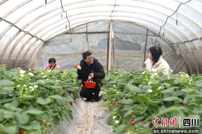 中新網(wǎng)四川新聞1月29日電 (羅興 舒俊松)1月28日,走進(jìn)瀘州市龍馬潭區(qū)特興生態(tài)草莓采摘園,掀開(kāi)大棚薄膜,一股暖意夾雜著清甜的果香撲面而來(lái)。棚內(nèi)綠意盎然,翠綠的藤蔓間,一顆顆飽滿紅潤(rùn)的草莓掩映其中,游客們提著籃子,穿梭在大棚間,俯身挑選成熟的草莓,時(shí)不時(shí)傳來(lái)的歡聲笑語(yǔ),讓冬日的大棚滿是煙火氣。