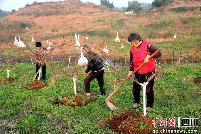 中新網(wǎng)四川新聞2月5日電。ɡ罱 藺云飛 杜智偉)當(dāng)前正值果樹的關(guān)鍵管護期,連日來,瀘州瀘縣果農(nóng)們正搶抓農(nóng)時,在一處處果園里開展精細的管理作業(yè),為后期果樹茁壯生長和豐收豐產(chǎn)打下基礎(chǔ)。
