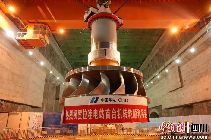 中新網(wǎng)四川新聞3月2日電。ㄎ喝f德 蘇婷)3月1日,世界在建同類型最高面板堆石壩電站——華電金上拉哇水電站首臺(4號)機(jī)組轉(zhuǎn)輪吊裝順利完成,標(biāo)志著首臺機(jī)組總裝建設(shè)進(jìn)入加速攻堅階段,為年底實現(xiàn)首批機(jī)組具備投產(chǎn)發(fā)電條件奠定堅實基礎(chǔ)。