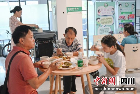 中新網(wǎng)四川新聞8月2日電 (吳平華 鄭棟梁)1日中午11點(diǎn)半,臨近午飯飯點(diǎn),成都青羊區(qū)蘇坡街道清源社區(qū)食堂迎來(lái)了新一天的食客,煮紅薯、糖醋排骨、虎皮青椒、涼拌雞丁、土豆肉絲等美味餐食相繼出鍋。食堂大廳里,鄰里見(jiàn)面時(shí)的招呼聲、吃飯聲、歡笑聲不斷。一張小小餐桌傳遞出的,既有城市的濃濃煙火味,也有居民的滿滿幸福感。