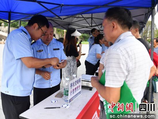 “手機變砝碼”活動區(qū)人氣十足,市民朋友們拿出手機,在工作人員操作下將手機進行稱重,稱重后的手機就變成了一個個“小砝碼”。