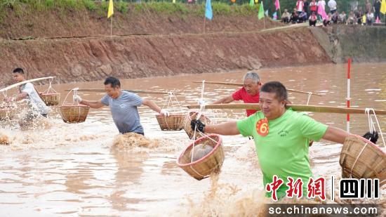 “魚跳起來(lái)了,快點(diǎn)兒摸!”隨著一聲令下,各村代表隊(duì)隊(duì)員挽起褲腳、踏入稻田,開(kāi)啟了一場(chǎng)別開(kāi)生面的摸魚比賽。不一會(huì)兒,稻田中不斷傳出"抓到魚了"的報(bào)喜聲,參賽者們既比拼水中沖刺的速度,更較量眼疾手快的絕活,個(gè)個(gè)收獲滿滿。