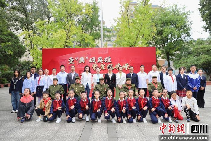 中新網(wǎng)四川新聞10月18日電。ㄓ浾摺⒅铱。10月18日,四川省退役軍人事務(wù)廳聯(lián)合省委宣傳部、省委黨史研究室、團省委、省文聯(lián)、省少工委等部門,在四川省革命傷殘軍人休養(yǎng)院舉行“童‘畫’頌英雄 榮軍憶崢嶸”——“童‘畫’我心中的英雄”全民國防教育主題活動。四川省革命傷殘軍人休養(yǎng)院老英雄、老戰(zhàn)士代表,主辦單位代表,“童‘畫’我心中的英雄”繪畫作品獲獎代表,以及成都新都區(qū)繁江小學(xué)學(xué)生代表等參加活動。