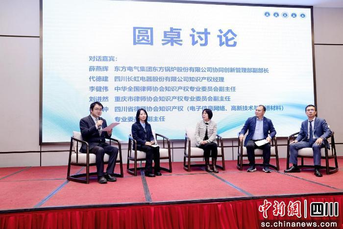 圓桌討論環(huán)節(jié),東方電氣集團(tuán)東方鍋爐股份有限公司協(xié)同創(chuàng)新管理部副部長薛燕輝、四川長虹電器股份有限公司知識(shí)產(chǎn)權(quán)經(jīng)理代德建、全國律協(xié)知專委副主任李健偉、重慶律協(xié)知專委副主任劉進(jìn)然、四川律協(xié)知專委副主任杜詩仲圍繞企業(yè)知識(shí)產(chǎn)權(quán)管理面臨的新挑戰(zhàn)、提升知識(shí)產(chǎn)權(quán)法律服務(wù)的價(jià)值、知識(shí)產(chǎn)權(quán)法律服務(wù)的區(qū)域協(xié)調(diào)發(fā)展等問題進(jìn)行了交流討論。