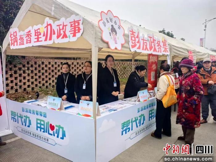 中新網(wǎng)四川新聞12月22日電 近日,彭州市第十五屆軍屯鍋盔美食文化活動(dòng)順利舉行,為了方便趕集的群眾,彭州市行政審批局與隆豐街道便民服務(wù)中心將“彭友政務(wù)集”搬到了活動(dòng)現(xiàn)場(chǎng),讓大家吃著鍋盔輕松辦理“政”事。
