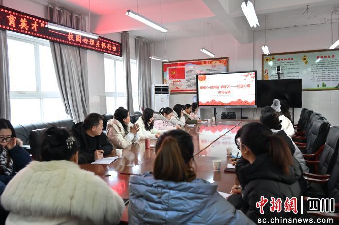 中新網(wǎng)四川新聞12月26日電。ㄈ浇瘊槪26日,由廣元市朝天區(qū)曾家鎮(zhèn)三支一扶干部王胤豐和志愿者范瑞杰共同倡議,朝天區(qū)之江中學(xué)、廣元市瑞霖綠化有限責(zé)任公司攜手助力的“暖童心?提師能?育英才”校園心理關(guān)懷行動(dòng)走進(jìn)曾家鎮(zhèn)第一小學(xué),不僅給老師們帶來(lái)了專(zhuān)業(yè)的心理賦能培訓(xùn),也為孩子們送上了溫暖慰藉,在“家校社”協(xié)同育人的畫(huà)卷上添上了溫馨的一筆。