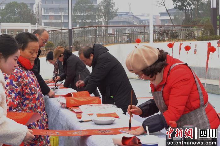 中新網(wǎng)四川新聞2月5日電。愃剂亍∴u星雨)2月5日,廣元市昭化區(qū)在元壩鎮(zhèn)老政協(xié)廣場舉行“大手小手同書福,翰墨書香共迎春”春節(jié)主題活動,百余位書法愛好者、兒童讀者及市民齊聚,以筆墨為媒介,傳遞新春祝福,感受傳統(tǒng)文化魅力。