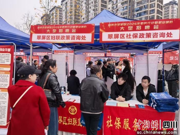 中新網(wǎng)四川新聞3月2日電(陳揚善 秦旭)近日,宜賓市翠屏區(qū)2026年春風行動暨就業(yè)援助大型招聘會在區(qū)市民中心啟幕;顒佑纱淦羺^(qū)人社局聯(lián)合多部門主辦、翠屏區(qū)就業(yè)創(chuàng)業(yè)促進中心承辦,以“春風策馬千崗至”的舉措,搭建企業(yè)與求職者對接橋梁,奏響“搶開局、穩(wěn)就業(yè)、保民生”的春日強音。