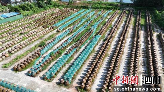 走進(jìn)資陽市中和釀造食品有限公司工廠,醇厚的醬香便纏上鼻尖。曬場上,數(shù)百個碩大的醬缸露天排開,每個缸邊都立著棕編“大帽子”,缸內(nèi)發(fā)酵的黃豆透著誘人的紅亮;另一側(cè),一排排陶缸在陽光下泛著溫潤的啞光,醋胚正經(jīng)歷700多個晝夜的日曬夜露,慢慢攢足風(fēng)味。
