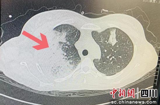 作為一名剛懷孕7周的孕婦,此時(shí)小梅已經(jīng)出現(xiàn)不明原因反復(fù)發(fā)燒4天,最高燒到40℃,還伴有寒戰(zhàn)、咳嗽、白痰、眩暈等癥狀,拍片還發(fā)現(xiàn)她的肺部感染嚴(yán)重,已經(jīng)出現(xiàn)了大面積的“白肺”。
