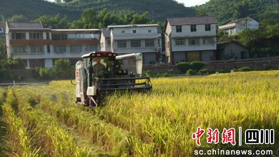 中新網(wǎng)四川新聞8月26日電(吳平華)26日,走進(jìn)宜賓市南溪區(qū)百里沖“天府糧倉”核心示范區(qū),千畝水稻陸續(xù)進(jìn)入成熟期,農(nóng)機手駕駛著收割機在稻田間穿梭,一排排稻穗、一粒粒稻谷盡收“囊中”。