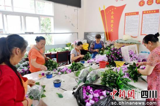 2018年,借著東西部扶貧協(xié)作中義烏幫扶汶川的東風,汶川縣鋪開了來料加工產業(yè)發(fā)展的藍圖。高富順也由此從全職主婦蛻變?yōu)榧妓嚲康摹邦I頭人”。在她的帶動下,這些年來工坊累計完成羌繡、無痕內褲、手工花等產品加工120余萬件,吸納460余人就業(yè),其中包括130余名就業(yè)困難群體,讓大家在家門口實現(xiàn)月均增收2700余元。